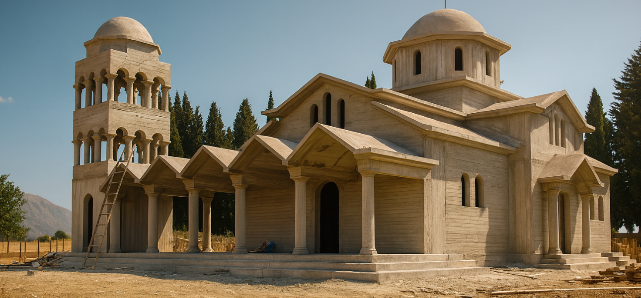 Εργασίες οπλισμένου σκυροδέματος για τον Ιερό Ναό Αγίου Δημητρίου στο Λυγουριό (περίοδος 2008).