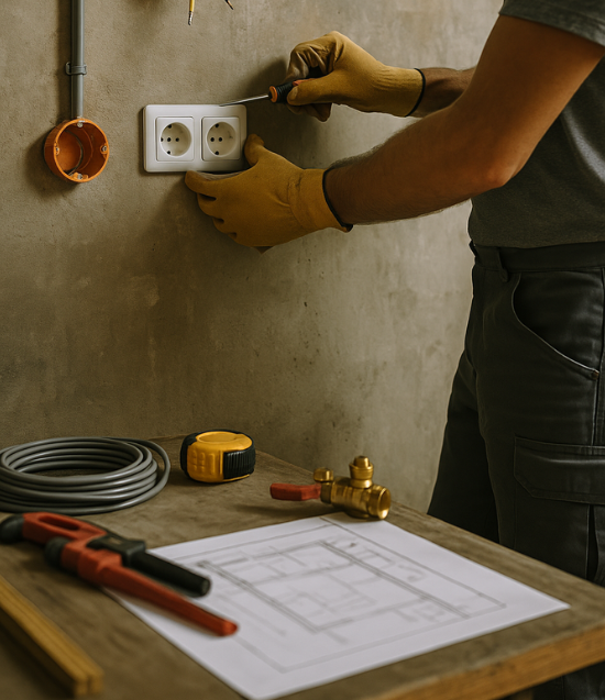 Αναλαμβάνουμε υδραυλικές και ηλεκτρολογικές εγκαταστάσεις, τοποθέτηση ειδών υγιεινής, κουφωμάτων, πλακιδίων και όλες τις εξειδικευμένες εργασίες που απαιτεί το έργο.